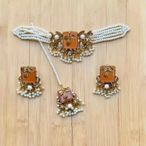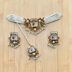 White Elegant choker set with teeka