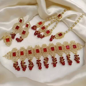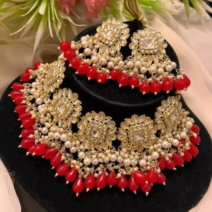 Red Gold plated choker set with teeka