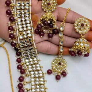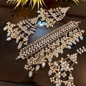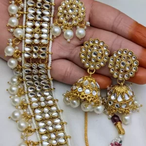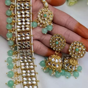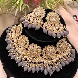 White Sheesh kundan choker set