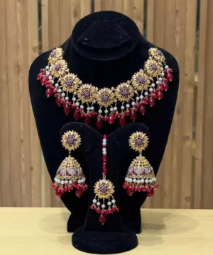 Kundan necklace set with teeka