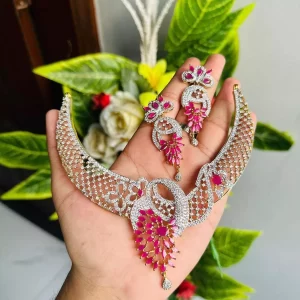 Silver Zircon necklace set with teeka