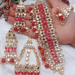 Red Noratan choker teeka set