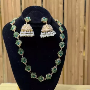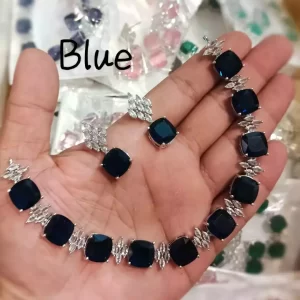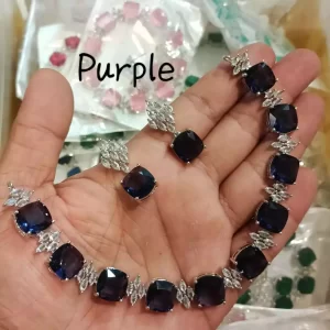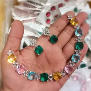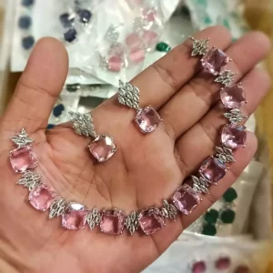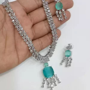 Silver American diamond necklace set
