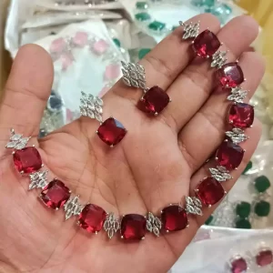 Red Zircon bridal set with jhumar