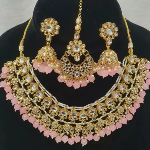 Pink Uncut kundan maala set