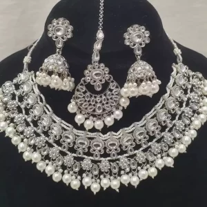 White Designer necklace set with teeka