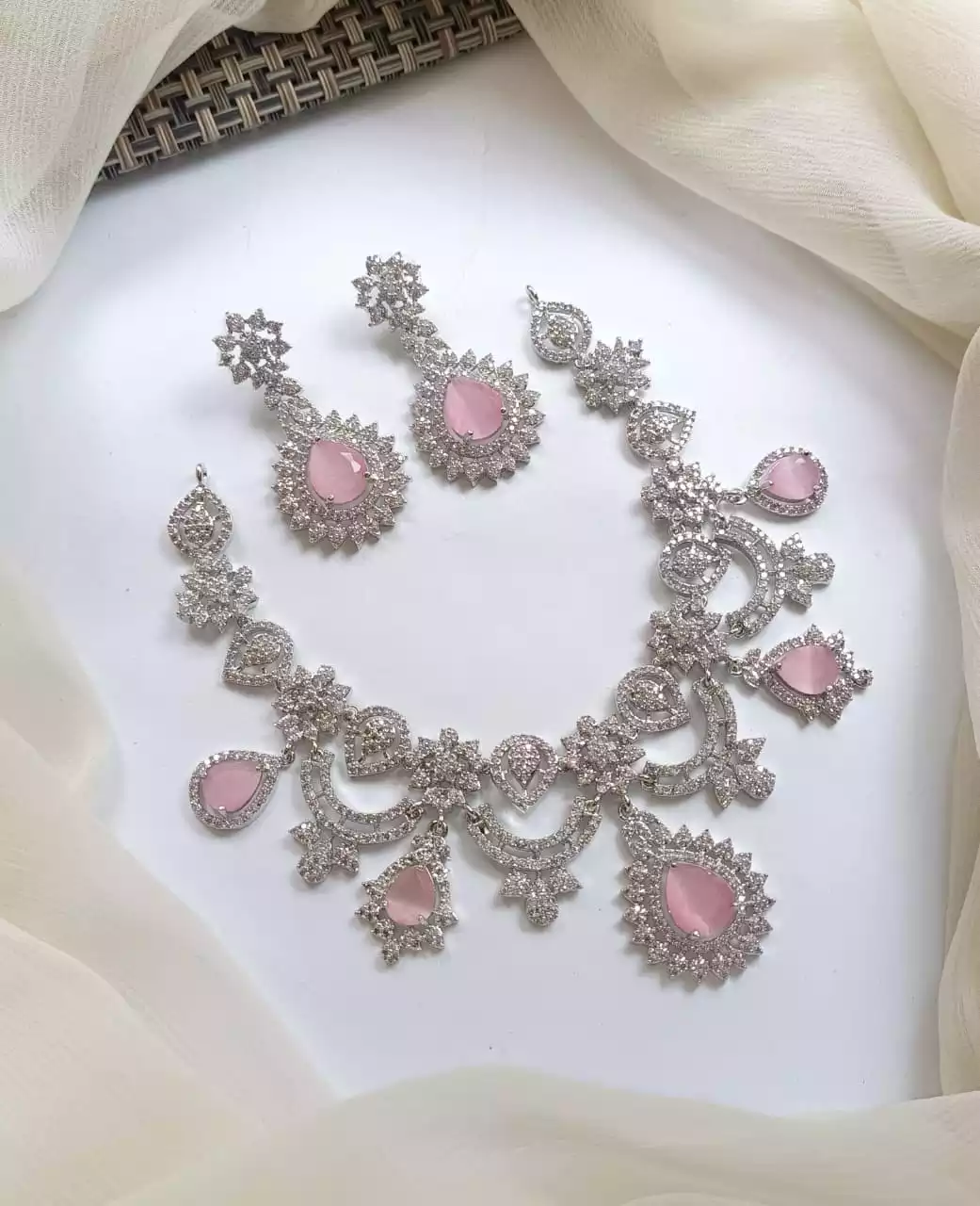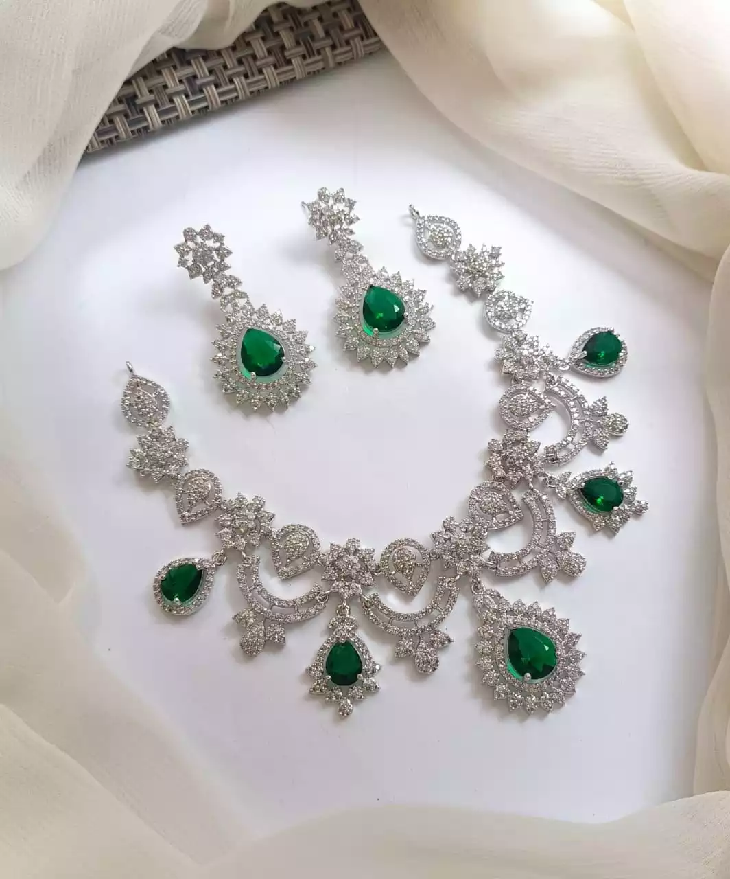 zircon bridal set with jhumar heavy jewelry