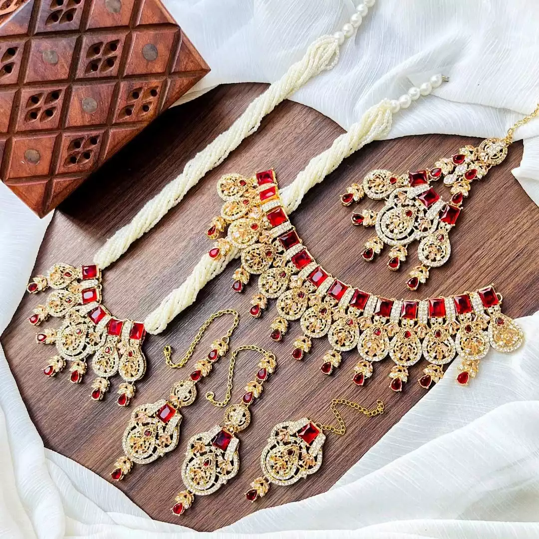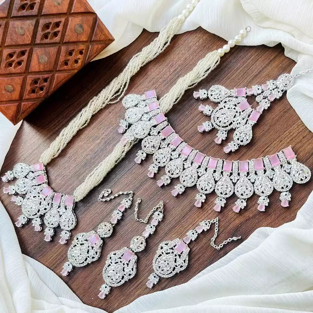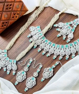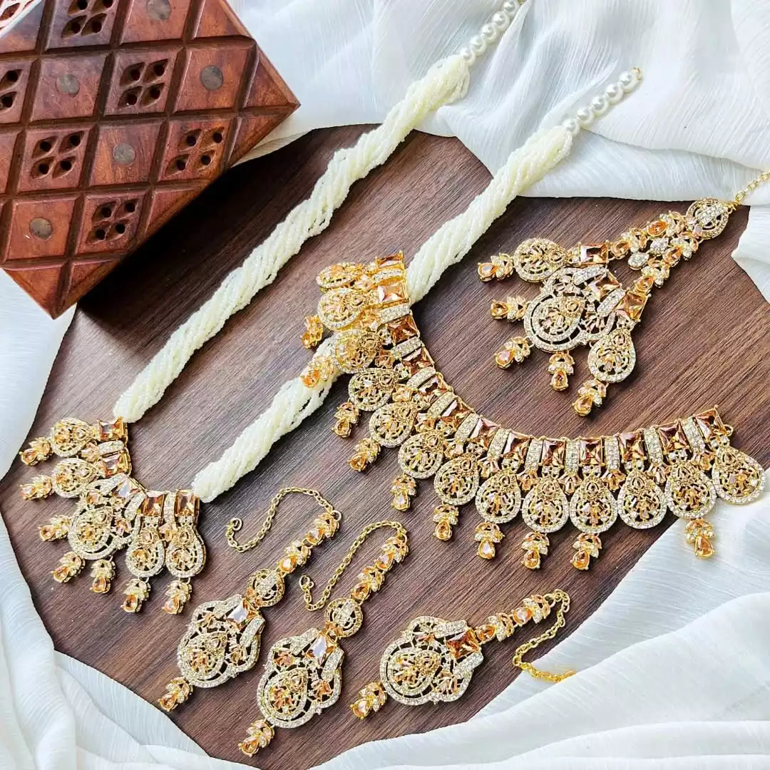 zircon bridal set with jhumar heavy jewelry