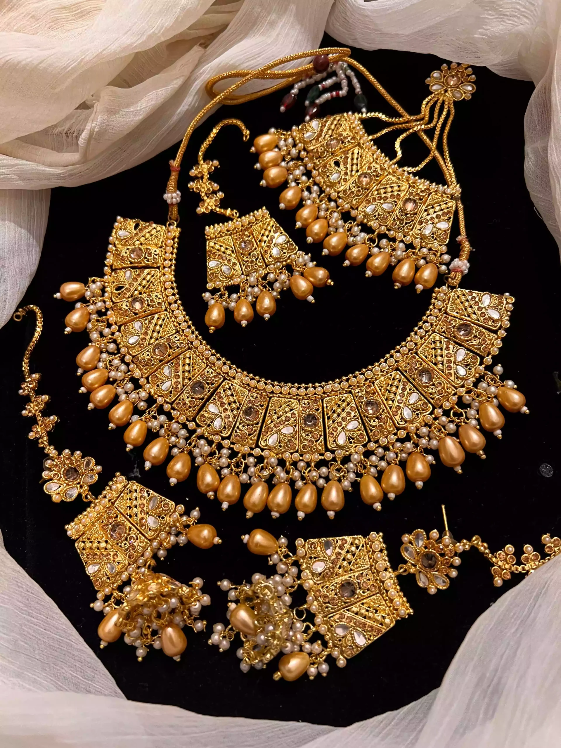 kundan necklace jhumar with jhumki style earrings