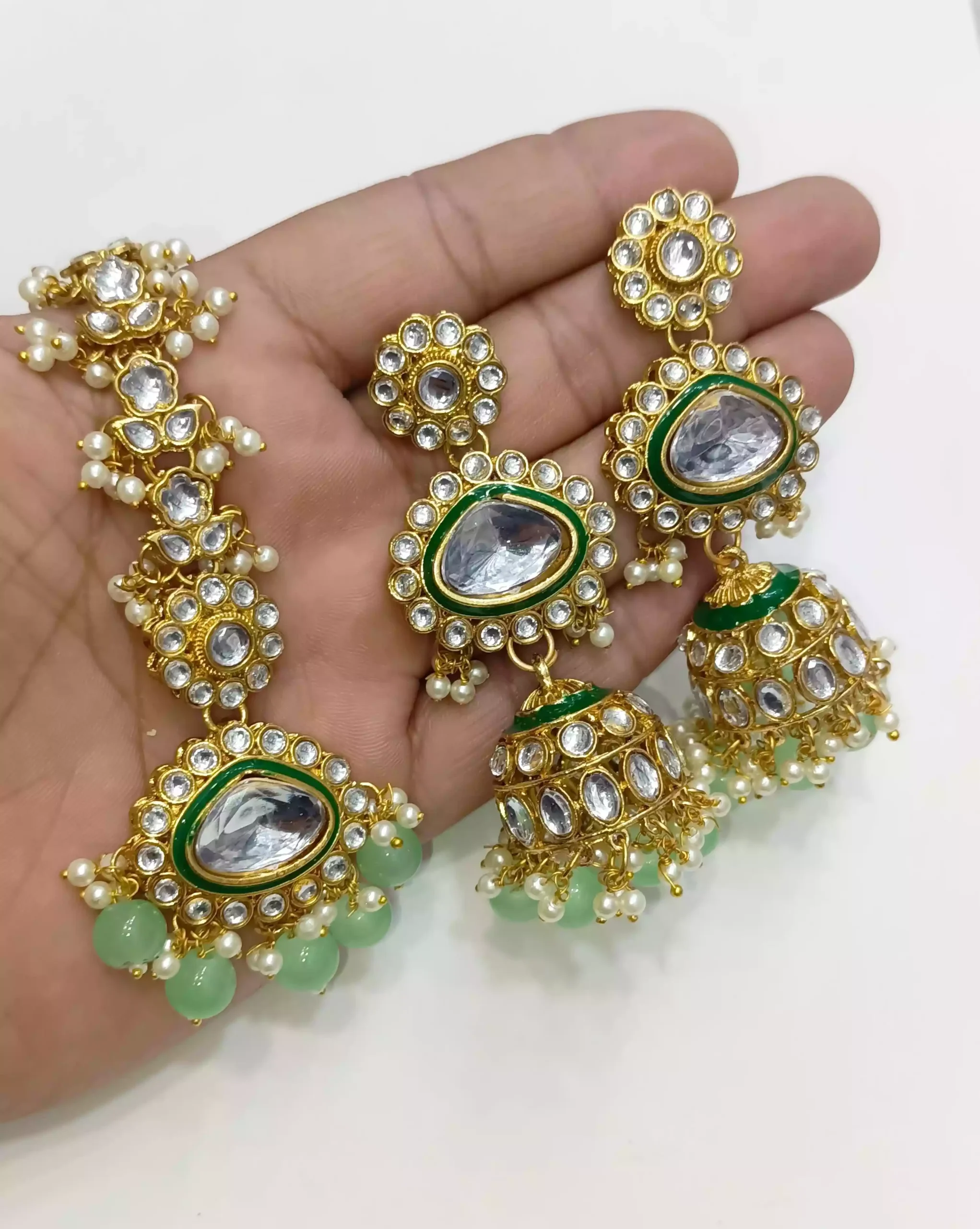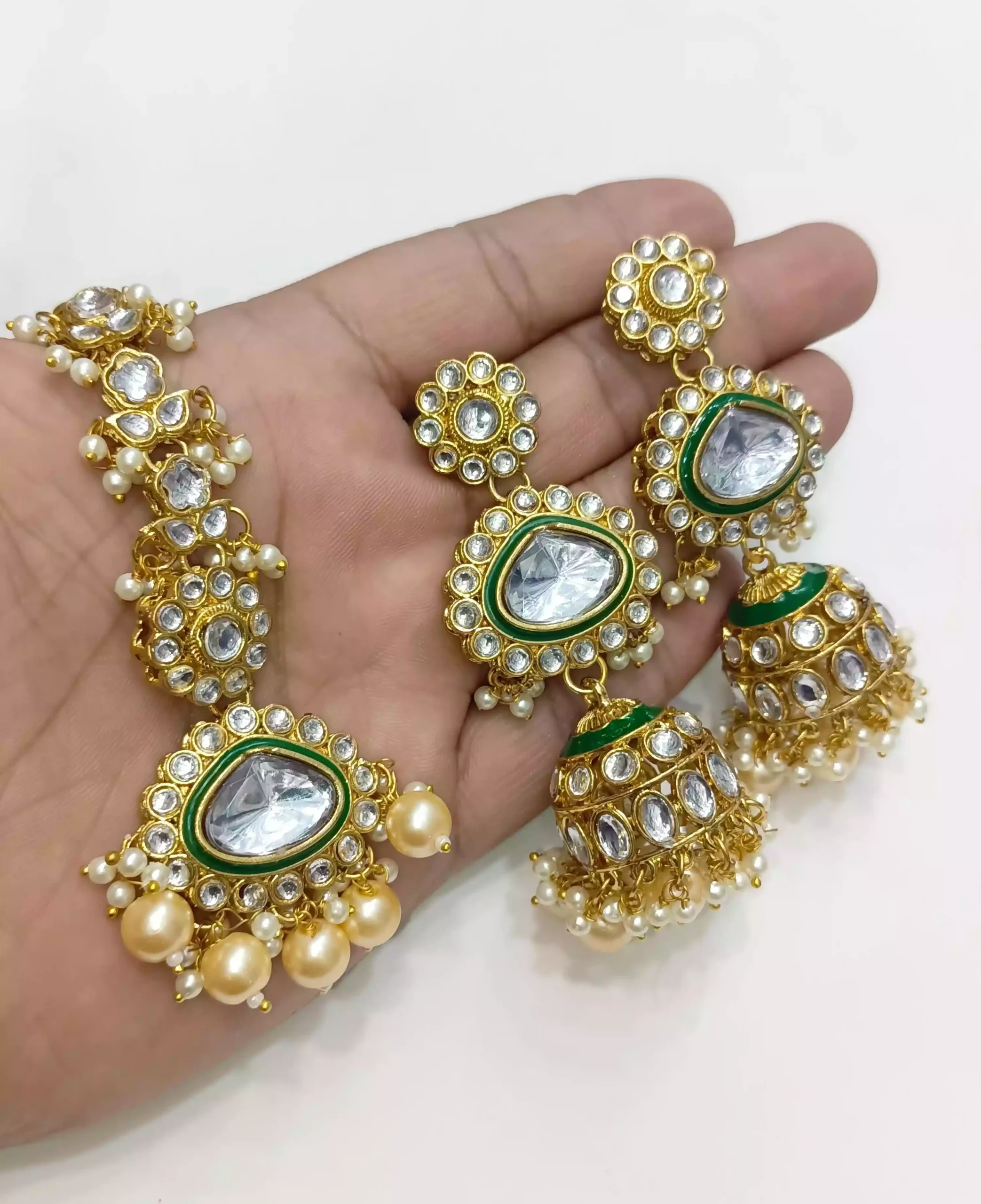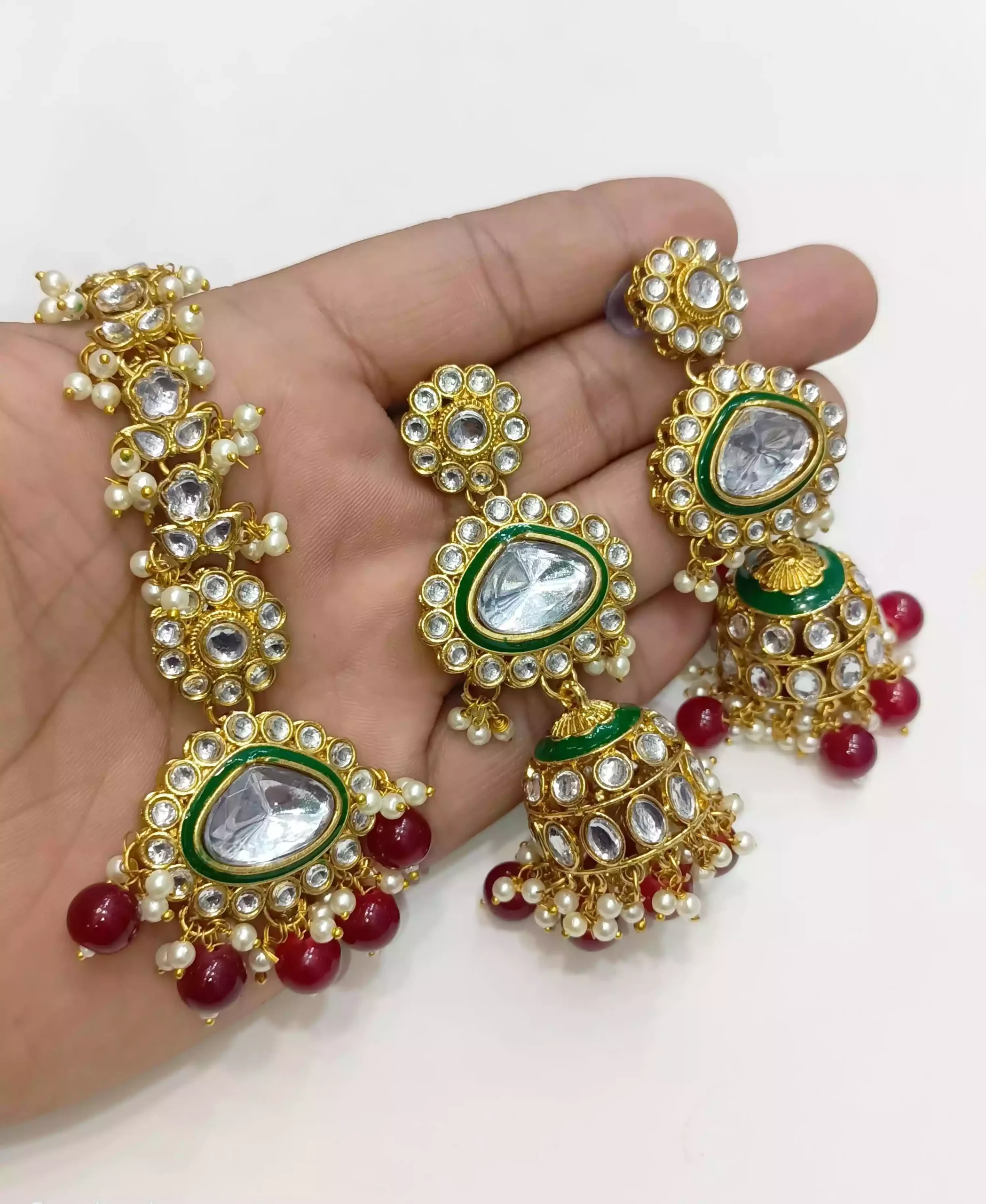 Kundan jhumki earrings with teeka