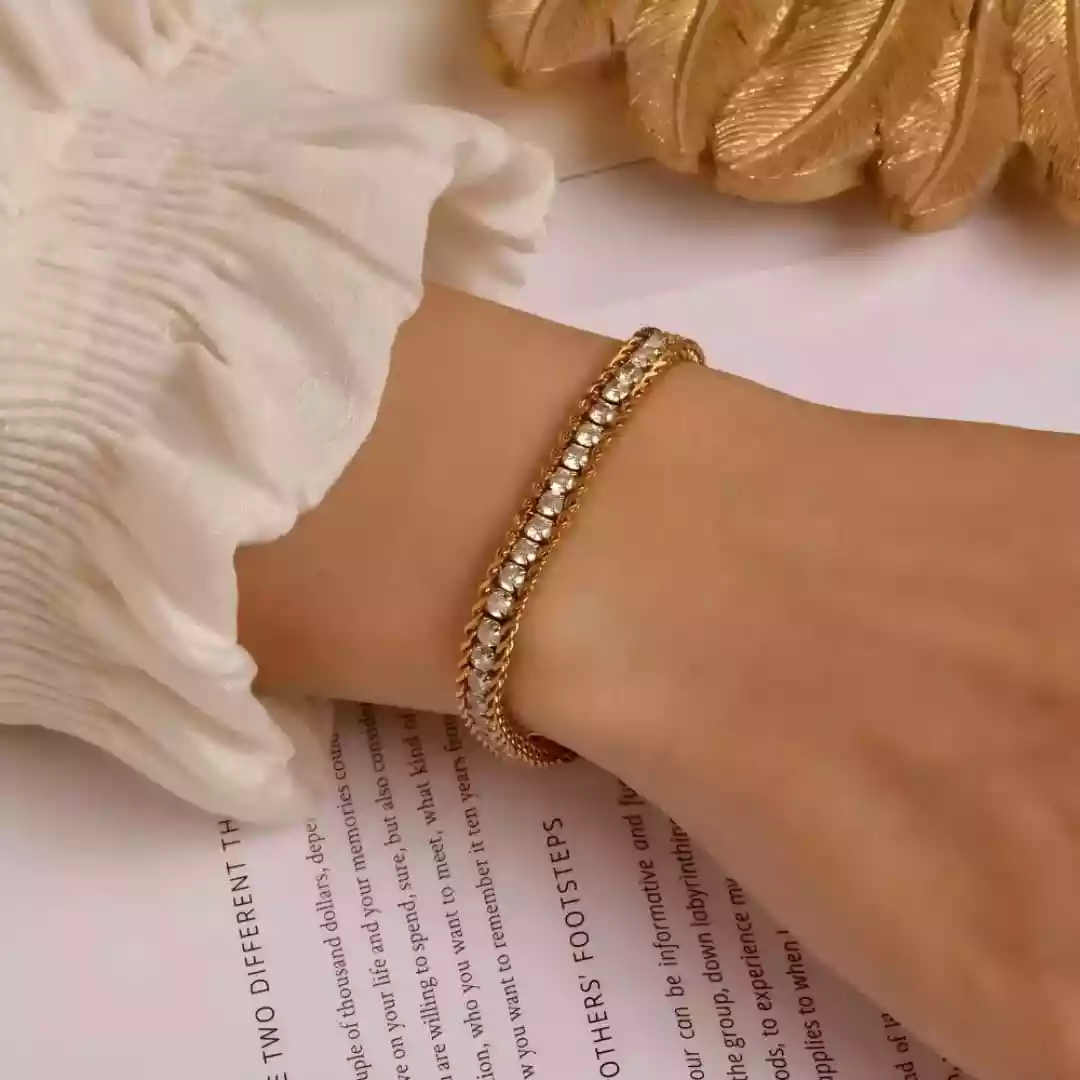 Stainless steel bracelet with zircons